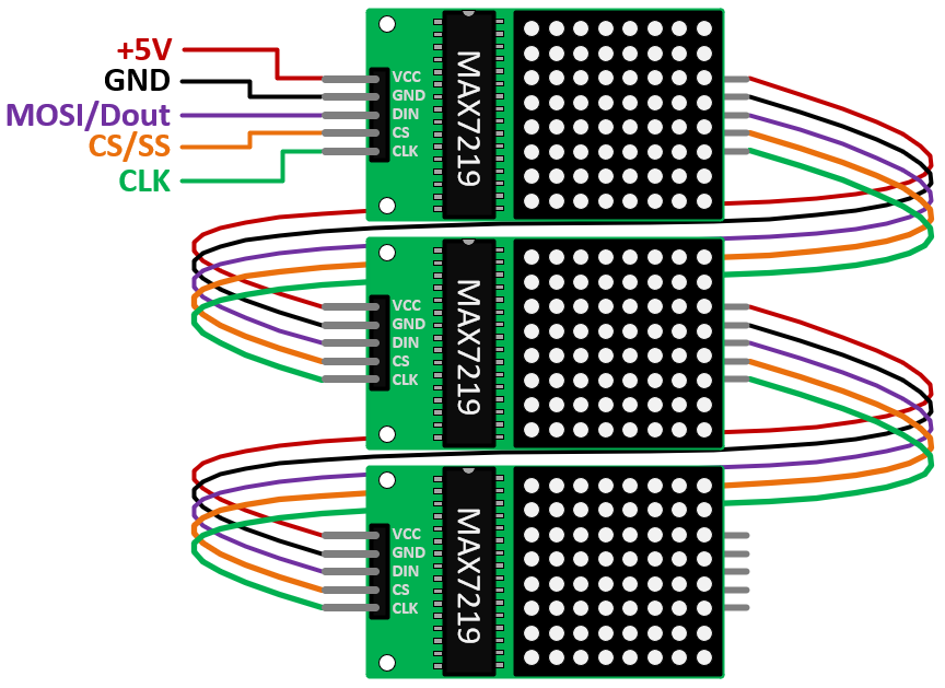 To build wider displays (8×16, 8×32, 8×64, etc.):
